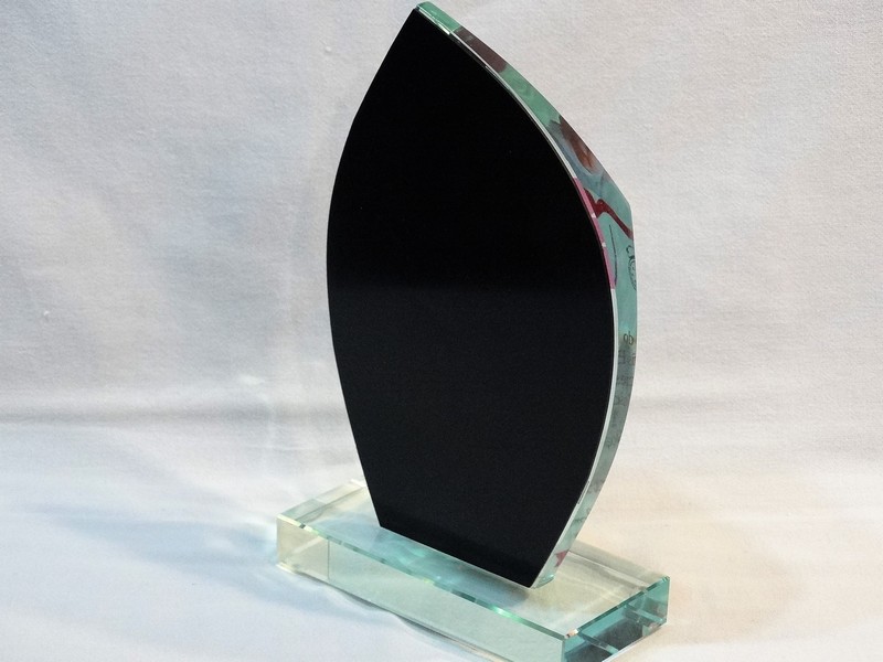 Statuetka ma wysokość 21 cm i grubość tafli 19 mm.