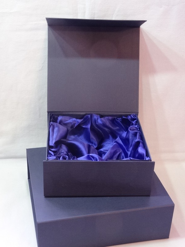 Do statuetki można dodatkowo zamówić składane etui kartonowe, wyściełane materiałem, w kolorze niebieskim.