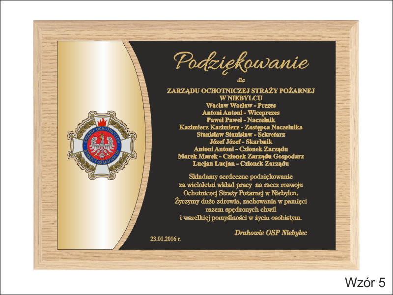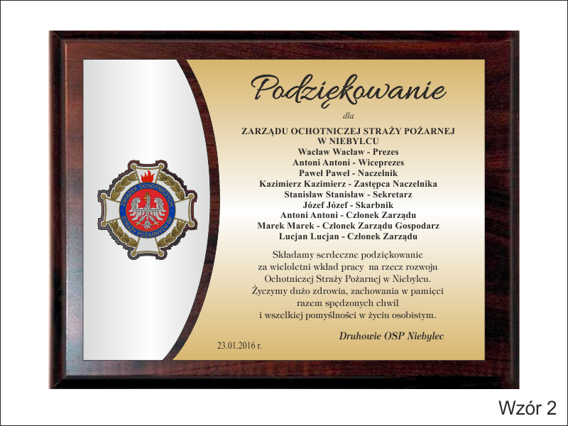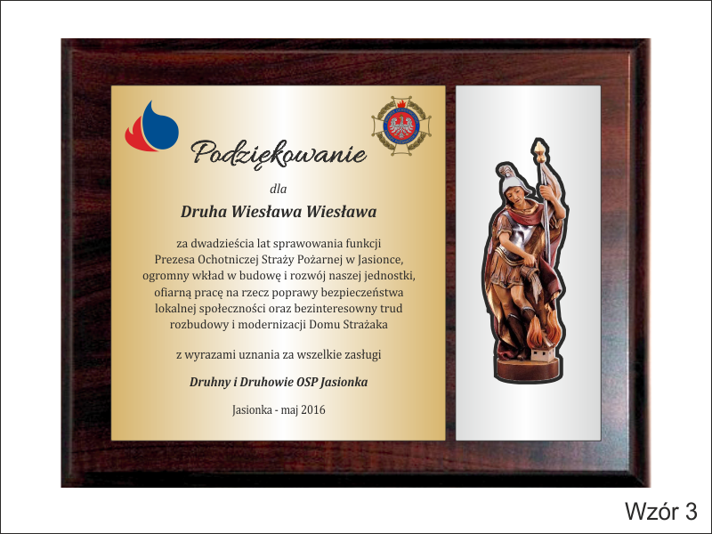 Istnieje możliwość wykonania dedykacji wg indywidualnych ustaleń i projektu uzgodnionego z klientem lub wg jednego z wzorów.