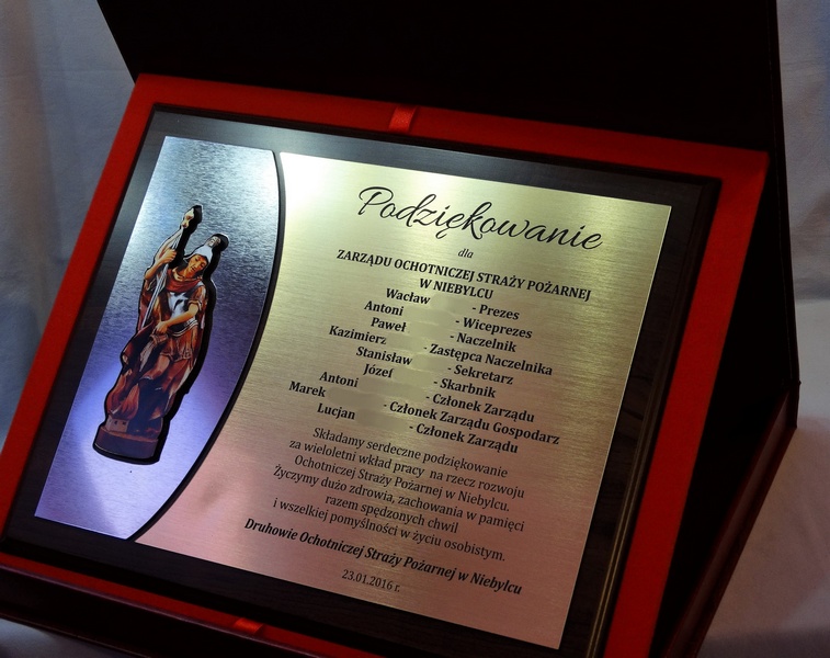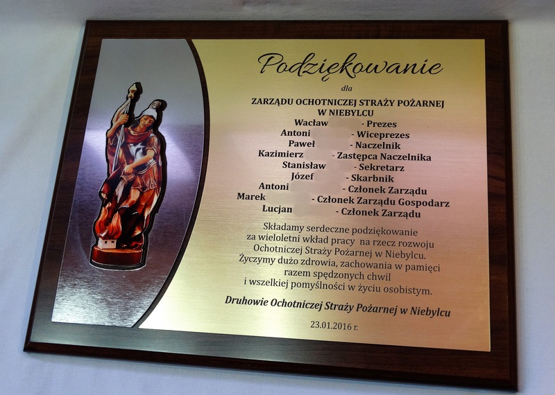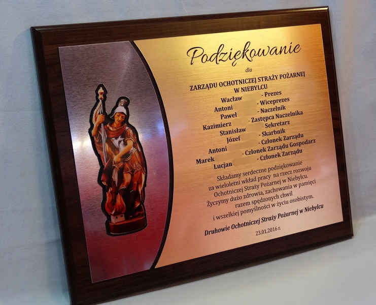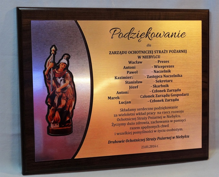- z dopasowanych do siebie laminatów lub blach z wygrawerowaną lub nadrukowaną dedykacją,