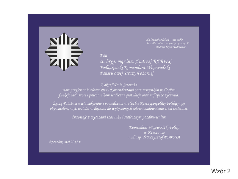 Istnieje możliwość wykonania dedykacji wg indywidualnych ustaleń i projektu uzgodnionego z klientem lub wg jednego z wzorów.