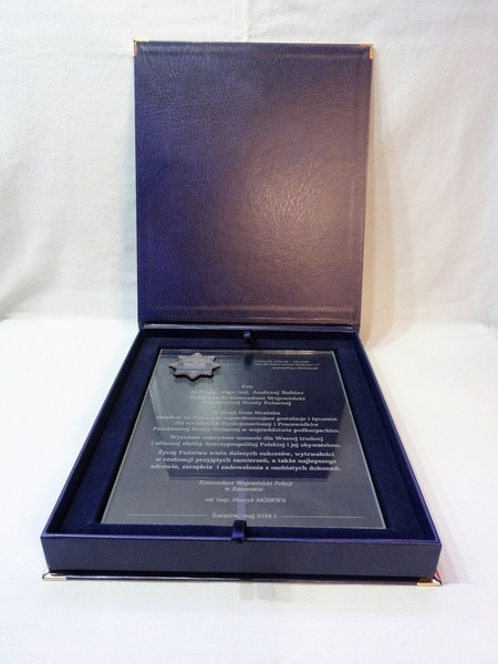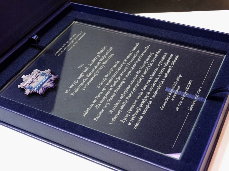 Podziękowanie za współpracę - policyjny dyplom szklany