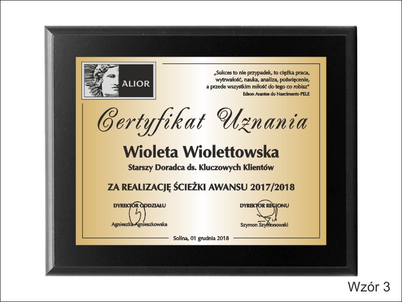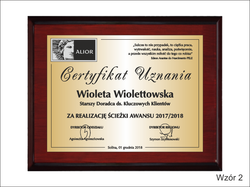 Prezentowany dyplom dedykowany jest jako certyfikat uznania za wykonaną pracę, ale można wykonać go też na inną okoliczność.