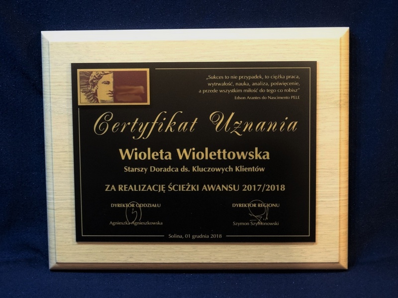 - z blaszki z nadrukiem lub laminatów z grawerem: dedykacji, herbu, loga