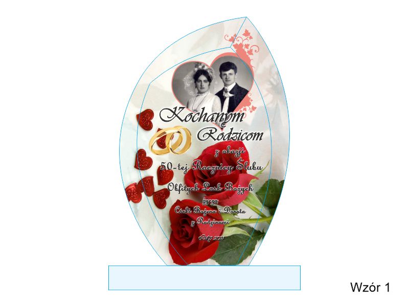 Oprócz dedykacji i ozdobnych grafik istnieje także możliwość nadrukować także zdjęcia Jubilatów.