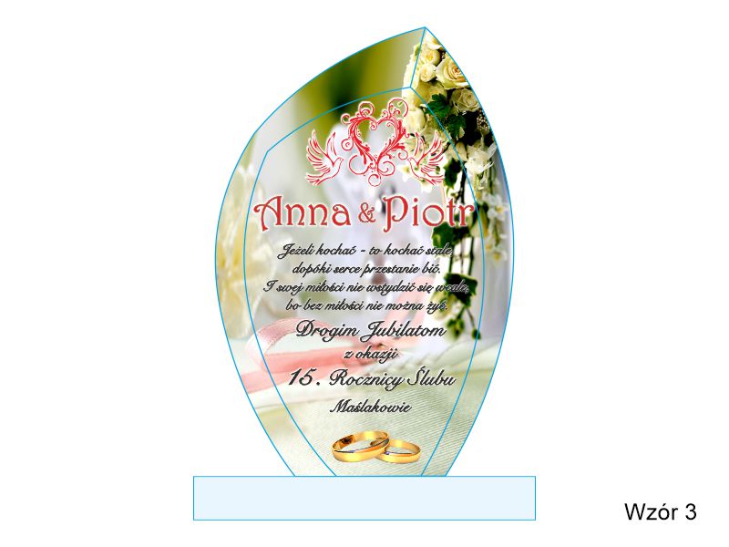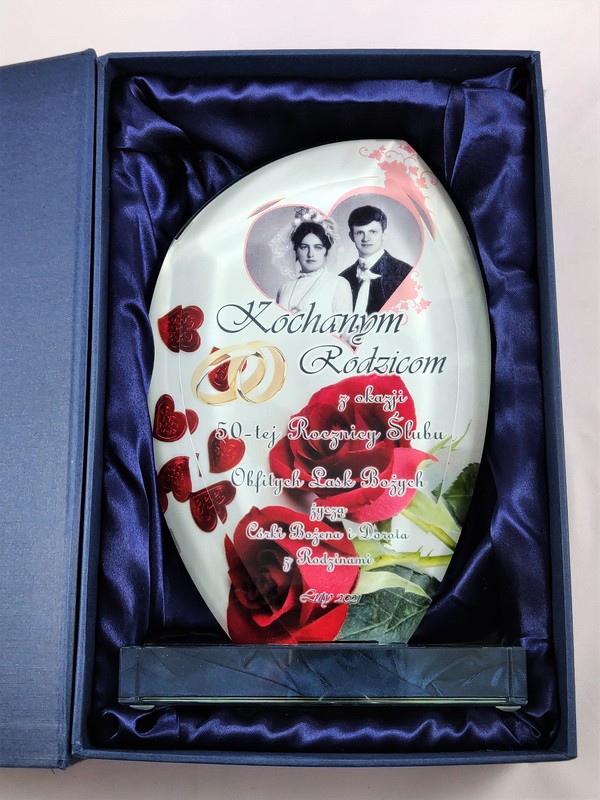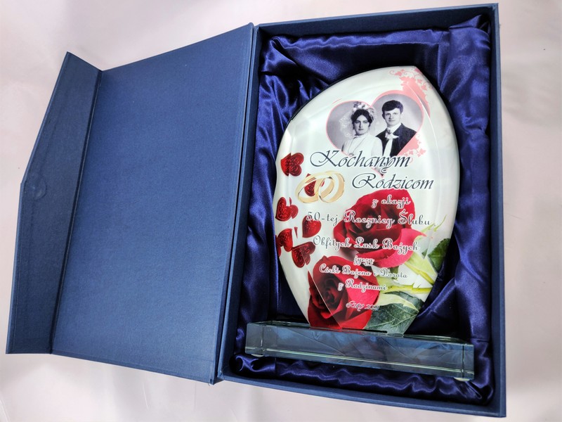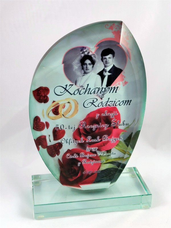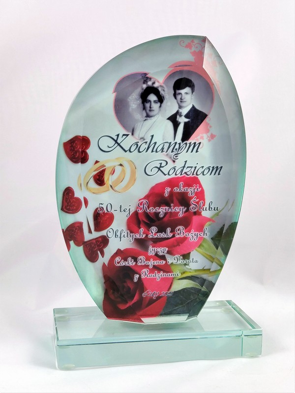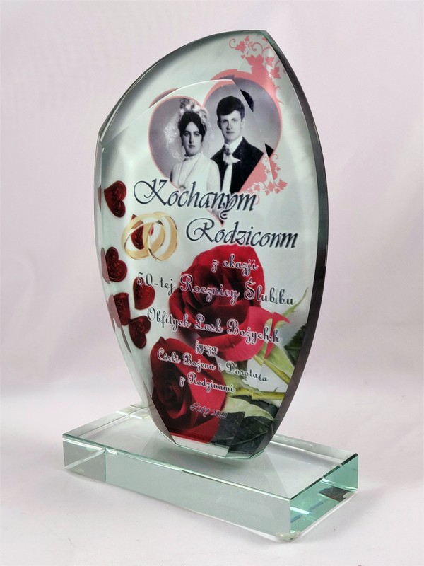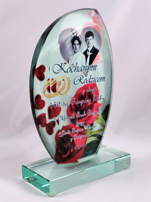 Prezent na rocznicę ślubu - statuetka szklana G010 z nadrukiem