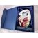 Szkło pakowane jest w ozdobne, kartonowe, wyściełane materiałem, niebieskie etui.
