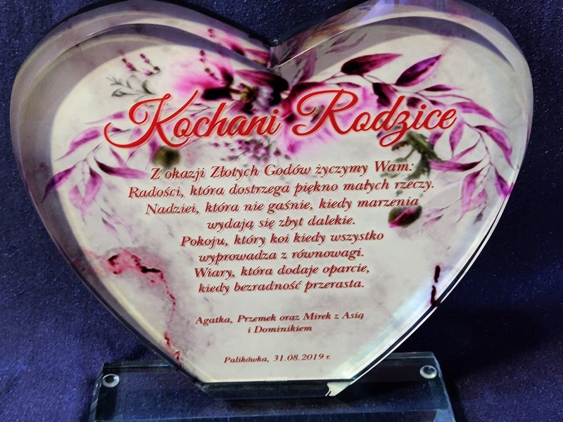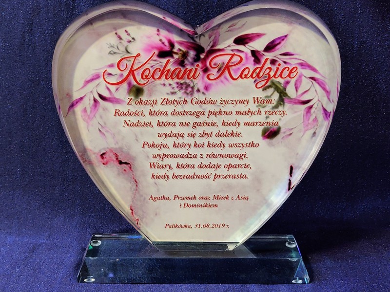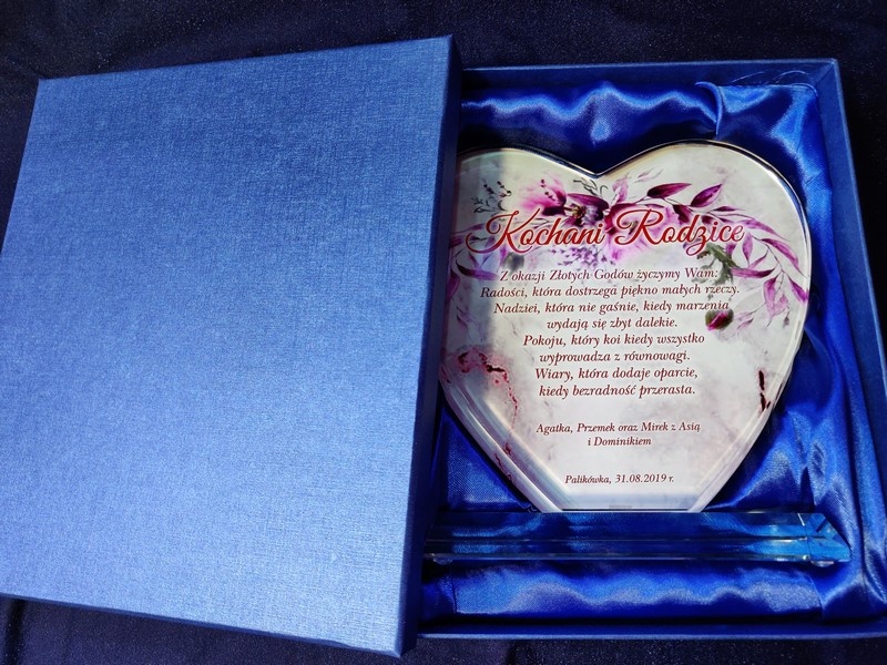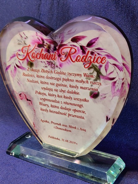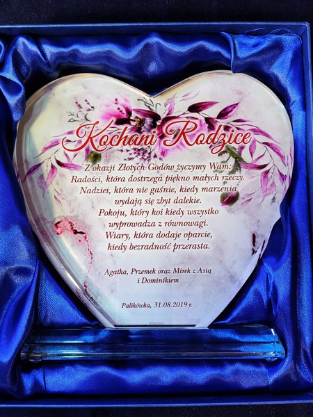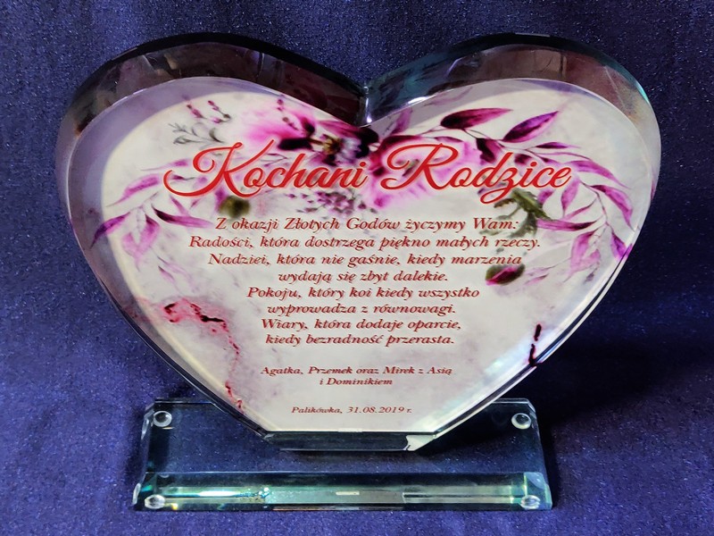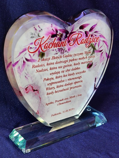 Rocznica Ślubu - statuetka szklana serce G031 z nadrukiem