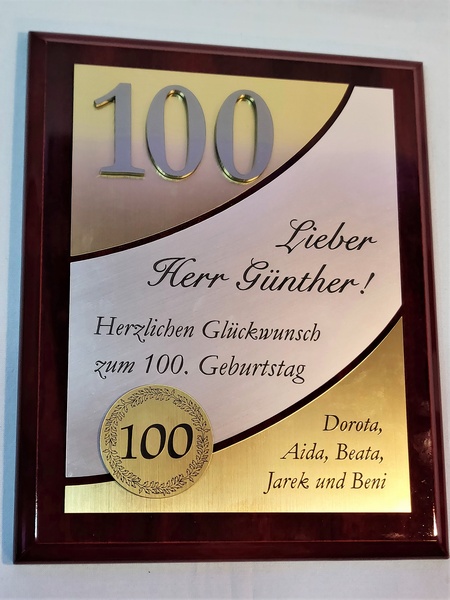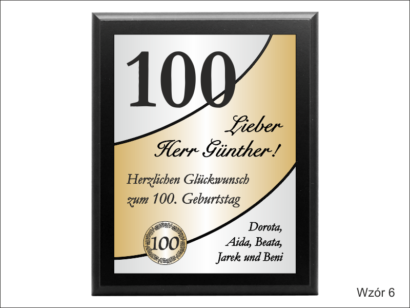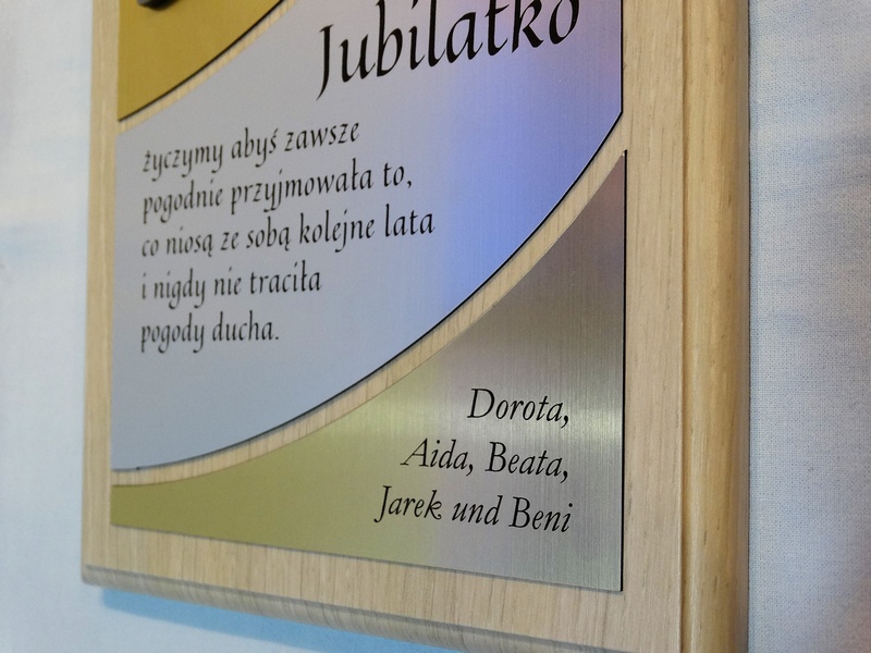 - z dopasowanych do siebie złotego i srebrnego laminatów z grawerowaną dedykacją oraz