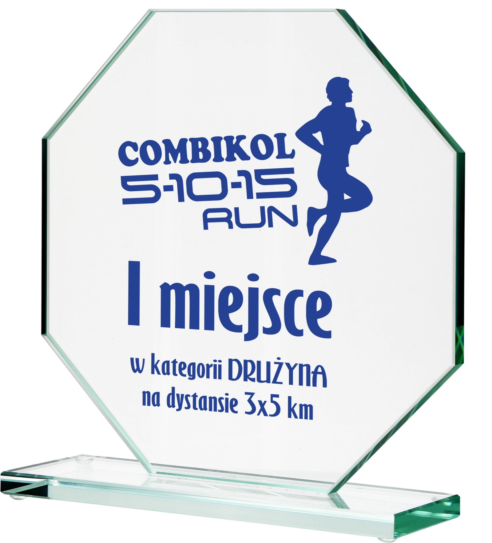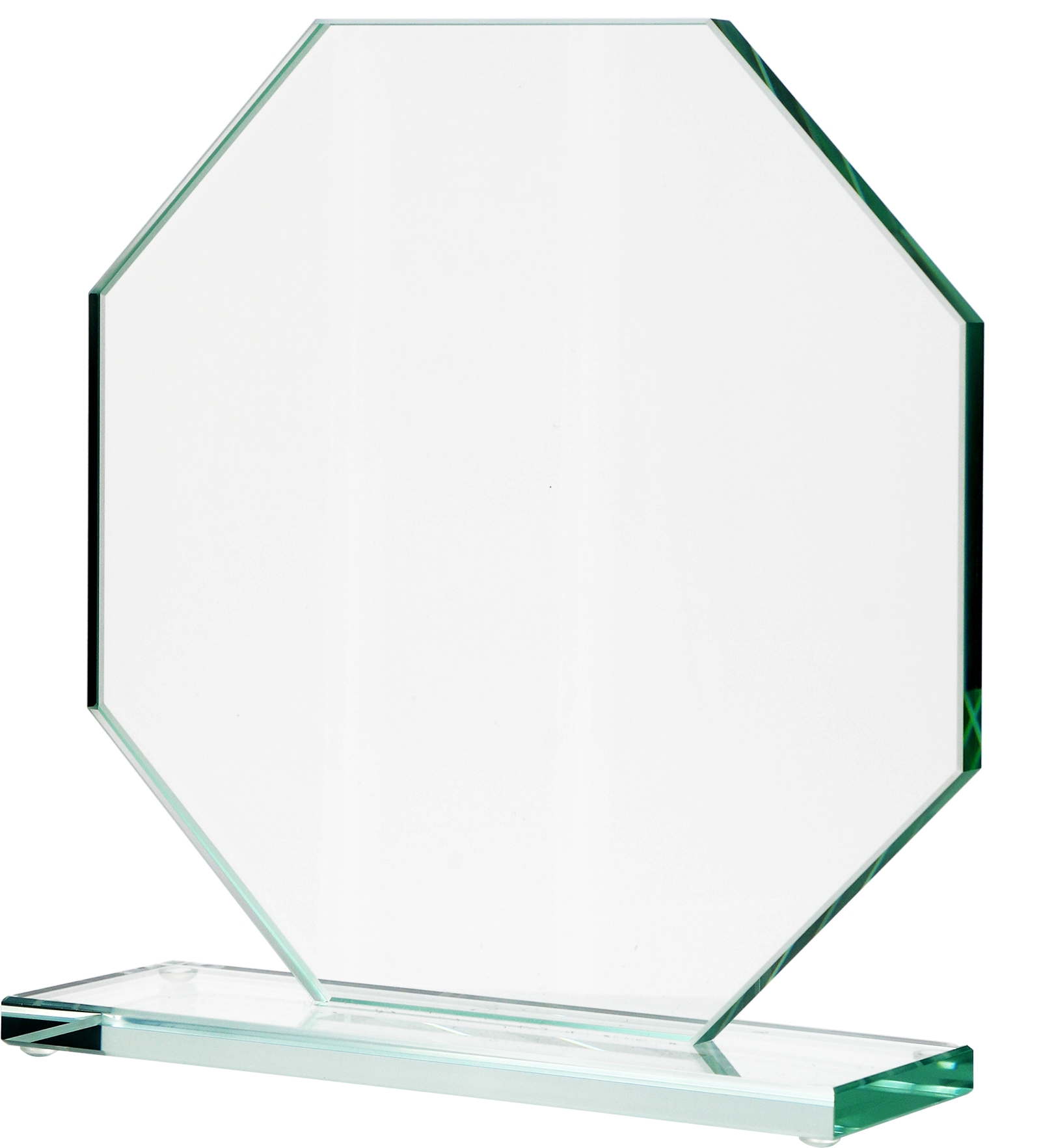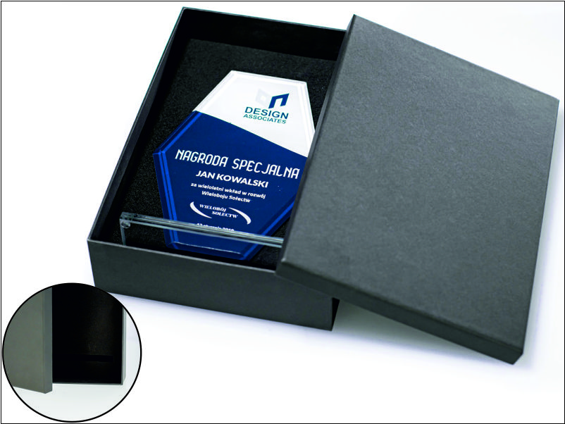 Tafla szklana statuetki ma na krawędziach wykonany szlif.