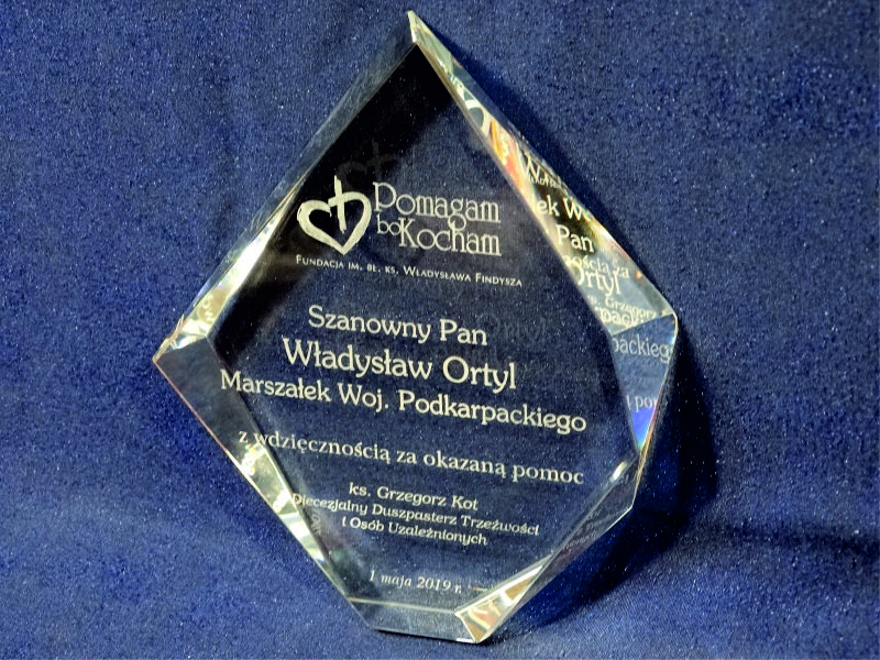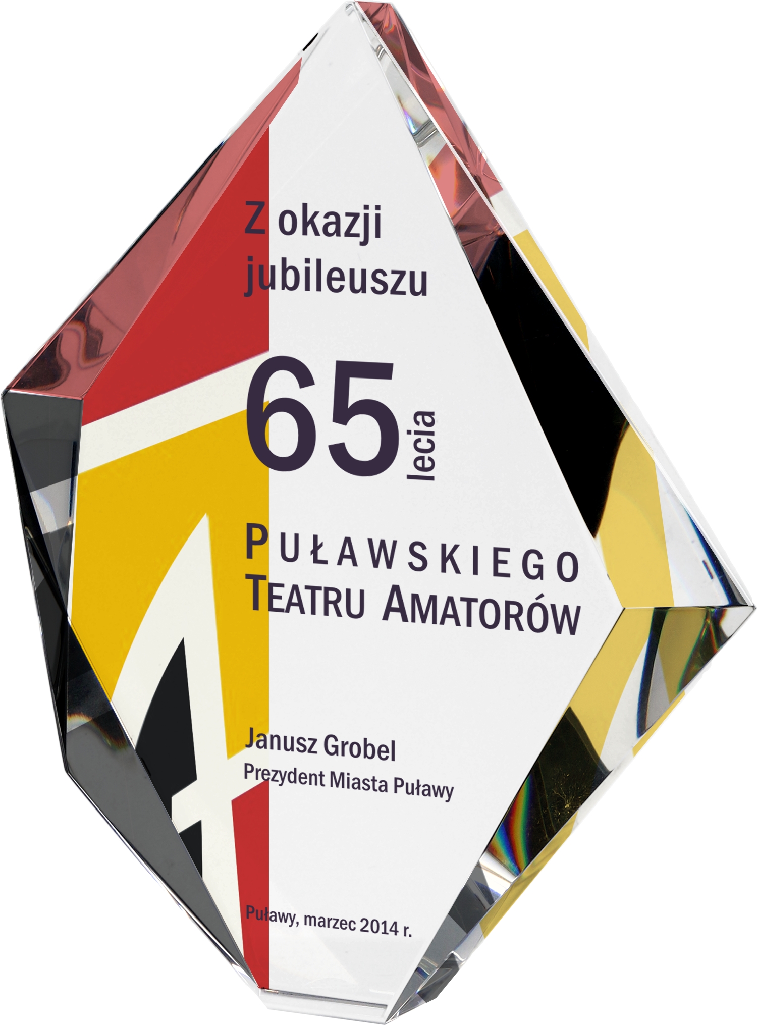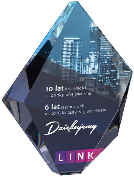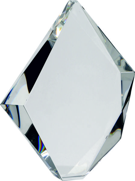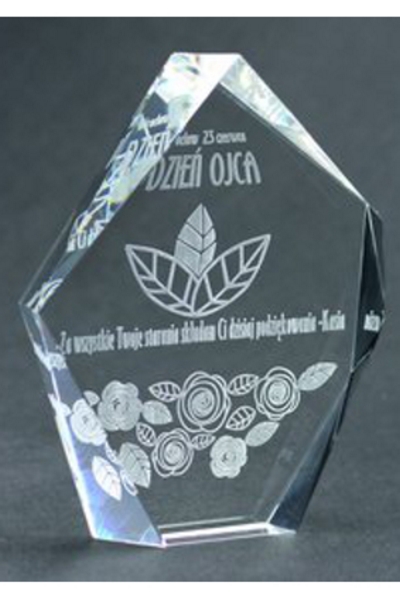Tafla szklana statuetki jest szlifowana pod różnymi kątami.
