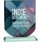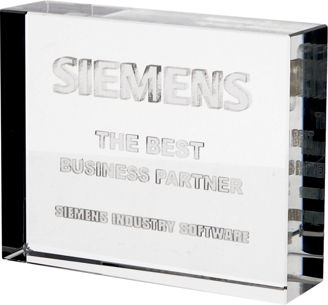 Trofeum - statuetka szklana C056 z grubego szkła z grawerem lub nadrukiem w etui.
