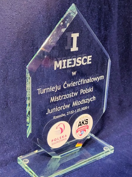 Tafla szklana statuetki ma na krawędziach wykonany szlif.