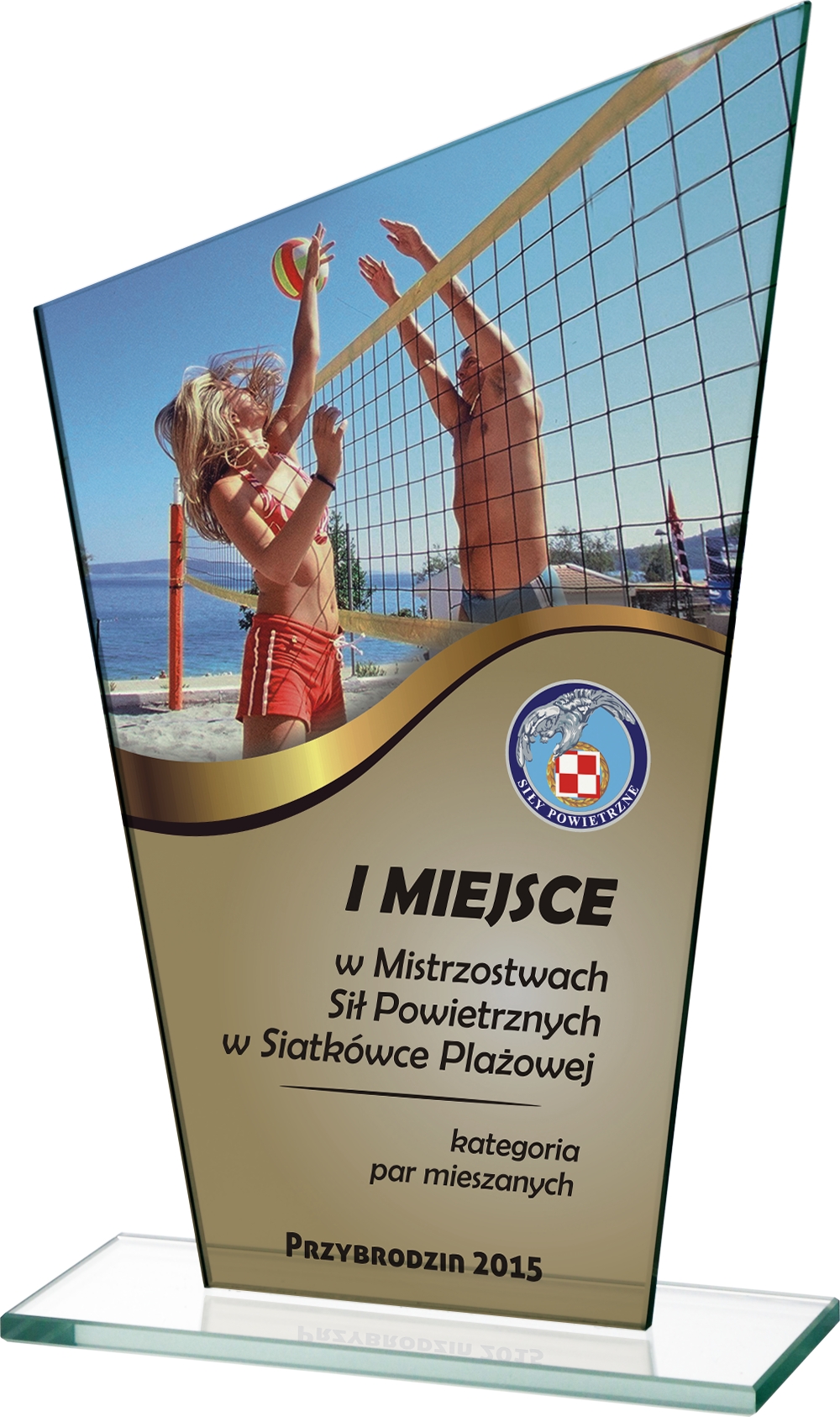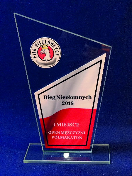 Tafla szklana statuetki ma na krawędziach wykonany szlif.