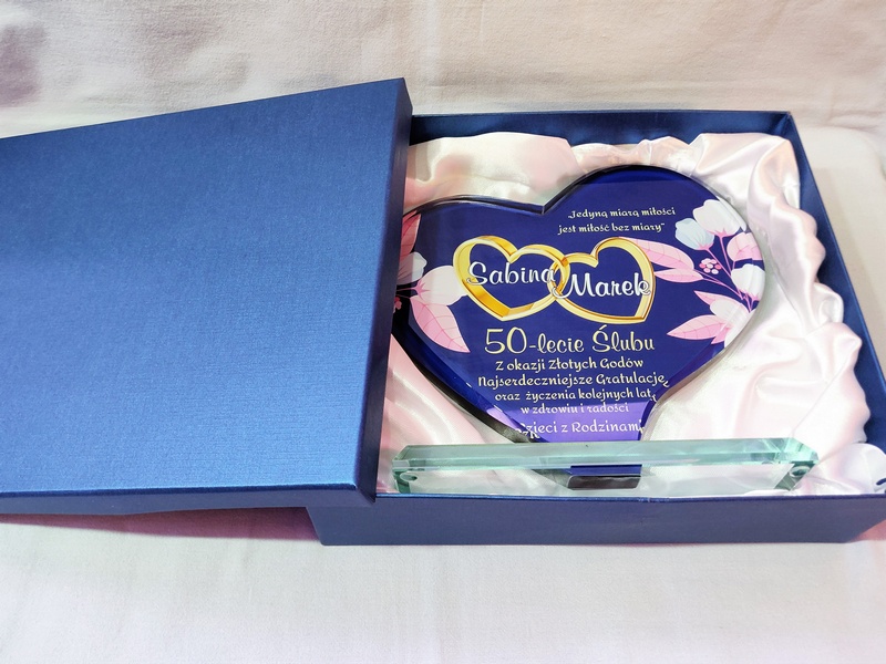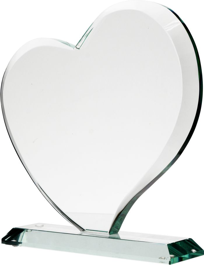 Statuetka szklana G041 w kształcie serca z grubego szkła z grawerem lub nadrukiem w etui.