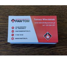Wizytówki firmowe dwustronne z czerwonym motywem - pakiet 100 szt.