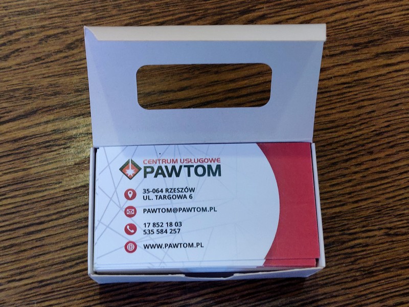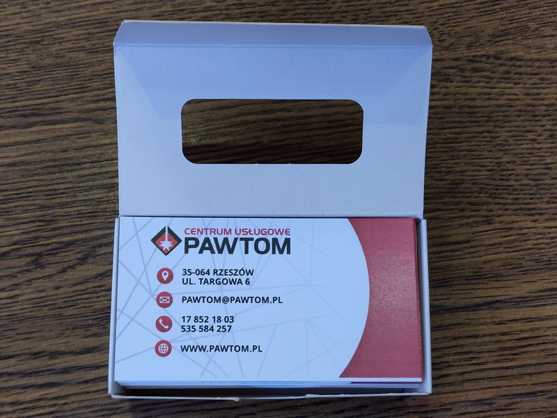 Gotowe wizytówki pakowane są w dedykowane kartonowe pudełko.
