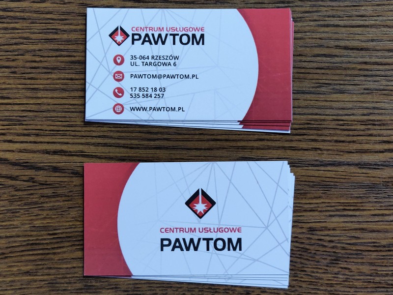 Wizytówki dwustronno, firmowe, w klasycznej formie, z czerwonym motywem, drukowane cyfrowo - pakiet 100 szt.