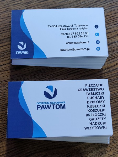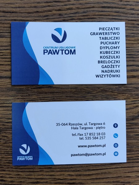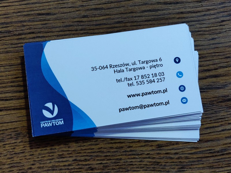 Wizytówki drukowane są na gładkim, białym, matowym papierze kredowym o gramaturze 300.