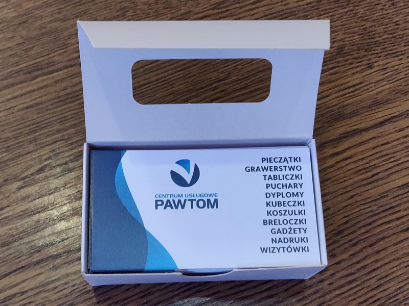 Gotowe wizytówki pakowane są w dedykowane kartonowe pudełko.