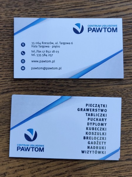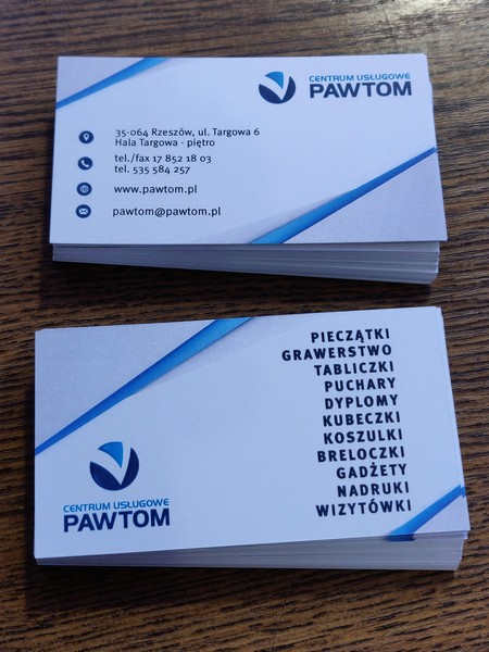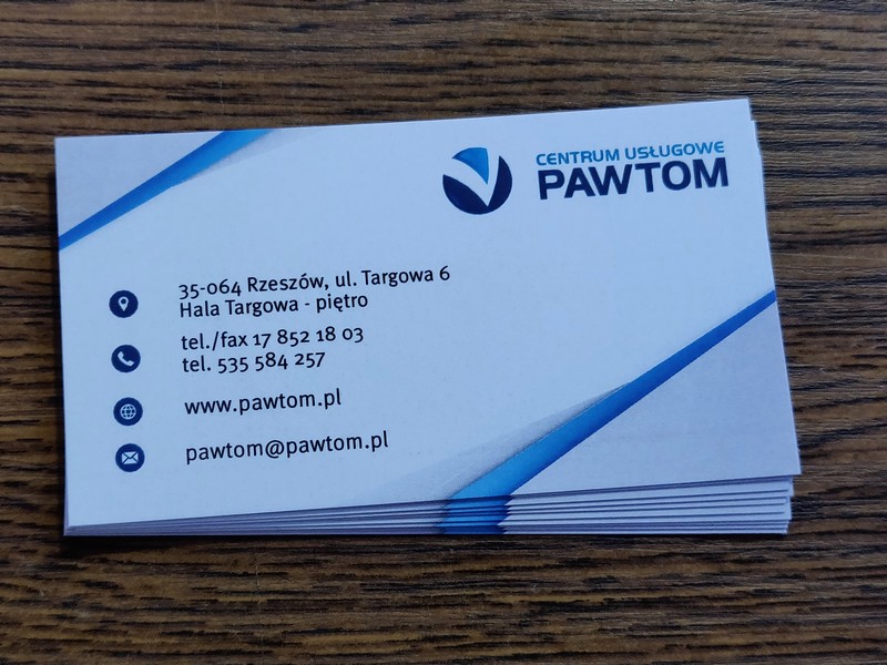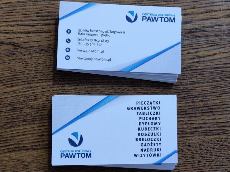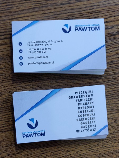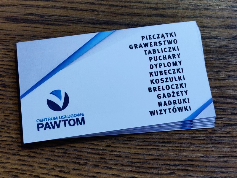 Wizytówki drukowane są na gładkim, białym, matowym papierze kredowym o gramaturze 300.