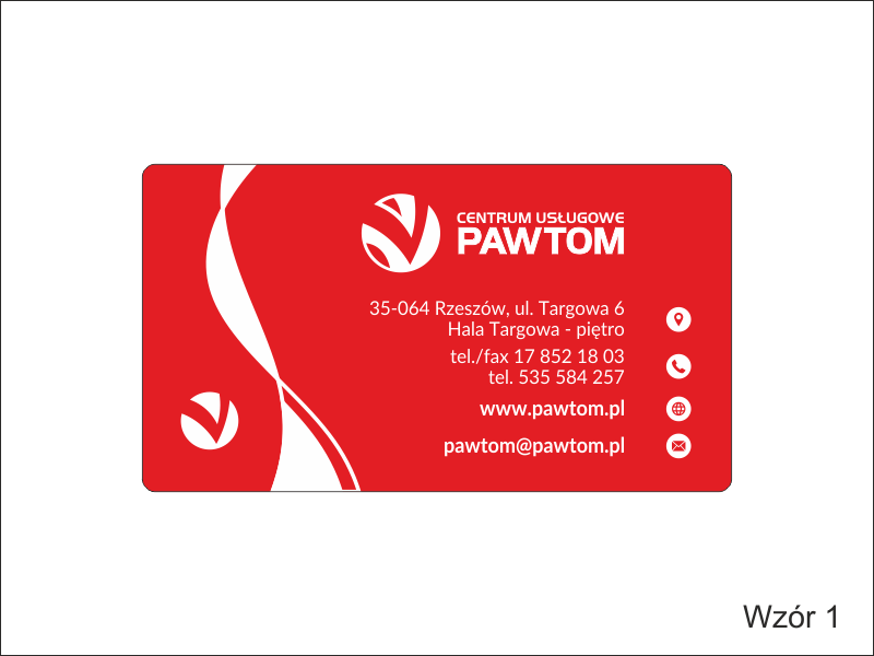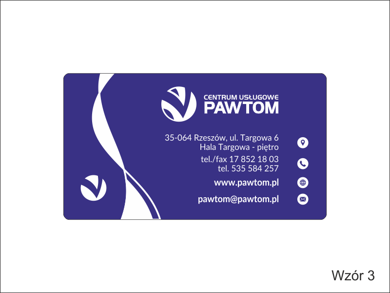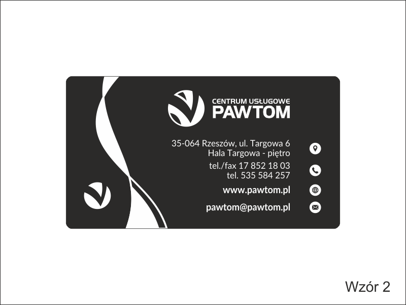 W projekcie wizytówki wykorzystano motyw w postaci umieszczonych z boku falowanych wstęg.