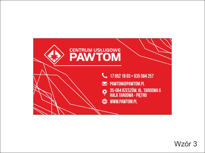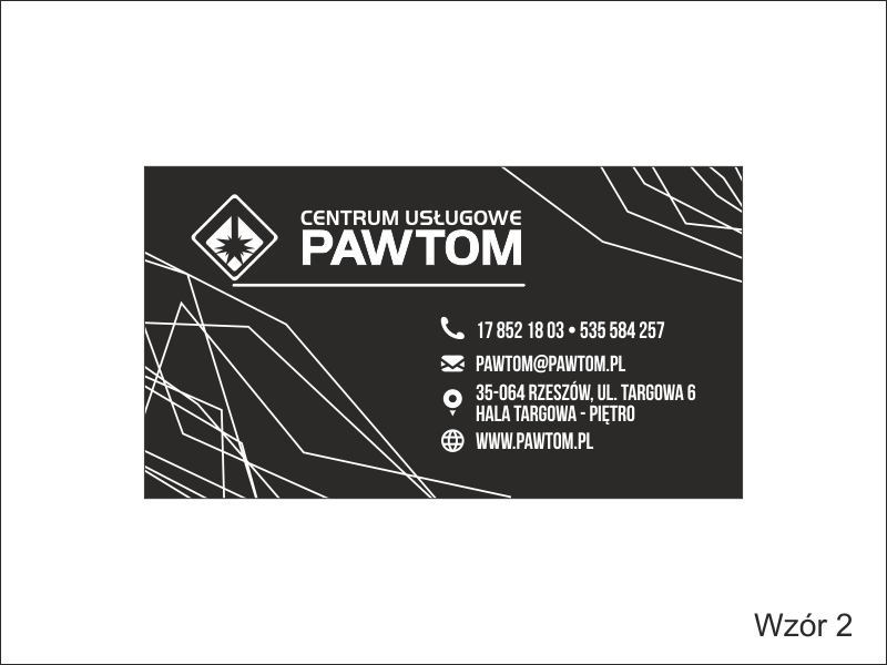 W projekcie wizytówki wykorzystano motyw w postaci umieszczonych narożnie nieregularnych kresek przypominających pajęczą sieć.
