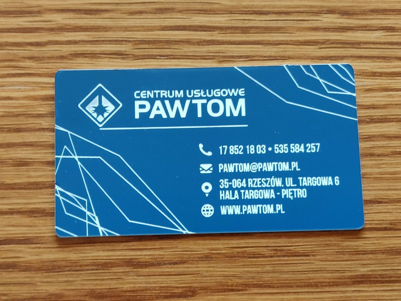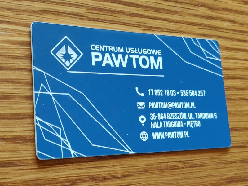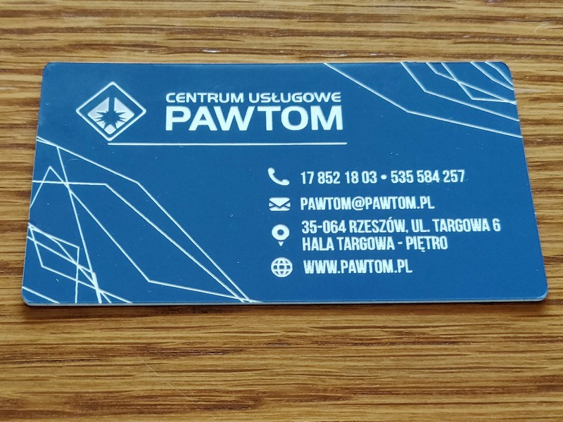 Poprzez zastosowanie zamiast papieru - laminatu, a zamiast nadruku - graweru, uzyskano wyjątkowe, usztywnione, trwałe wizytówki przypominające plastikowe karty.