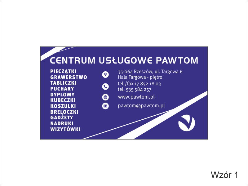 W projekcie wizytówki wykorzystano motyw w postaci skośnych, narożnych pasków.