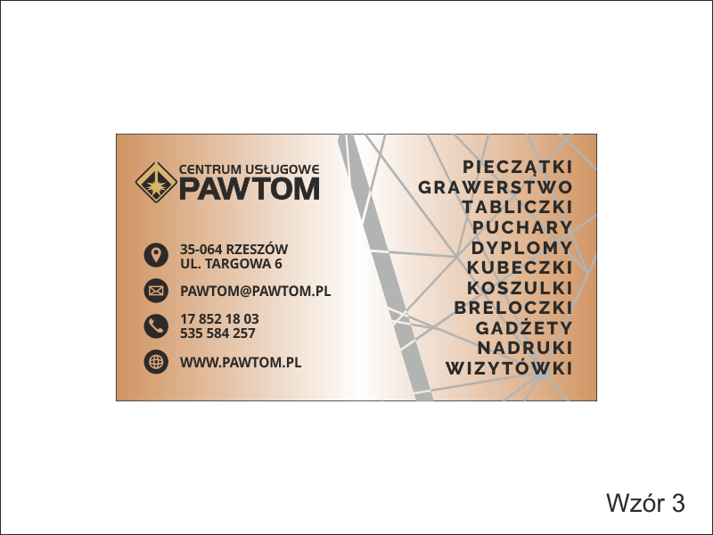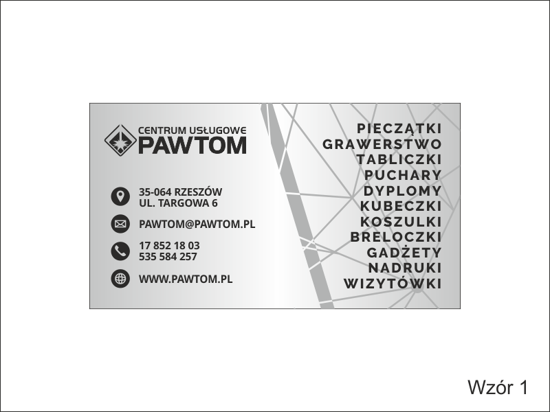 W projekcie wizytówki wykorzystano motyw w postaci umieszczonych z boku nieregularnych kresek w formie siatki.