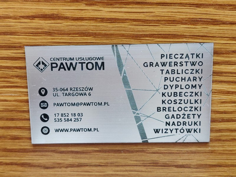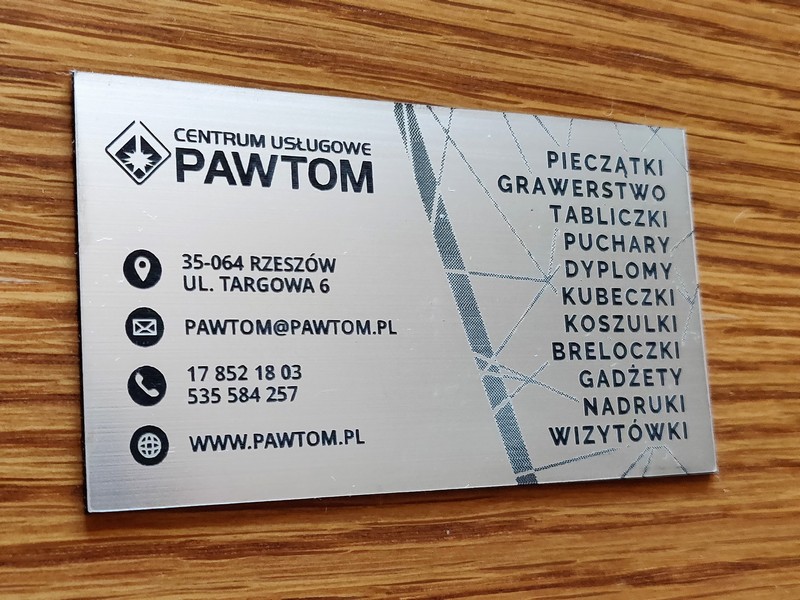 Wyjątkowe firmowe grawerowane wizytówki z laminatu grawerskiego w metalicznym odcieniu - pakiet 50 szt.