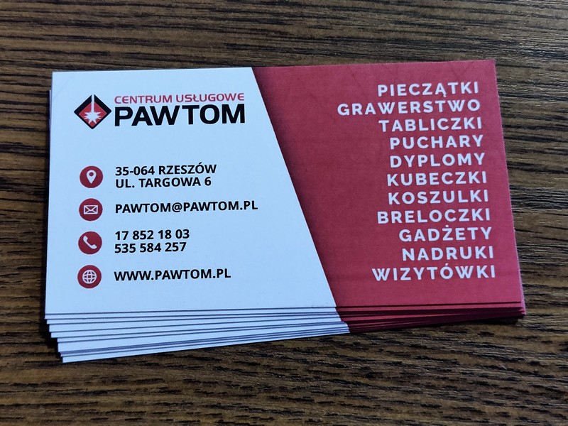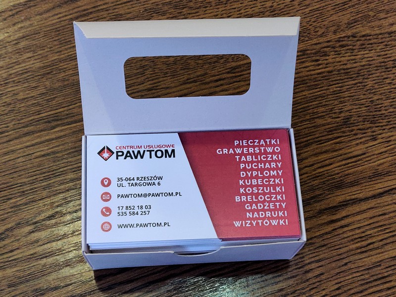 Gotowe wizytówki pakowane są w dedykowane kartonowe pudełko.