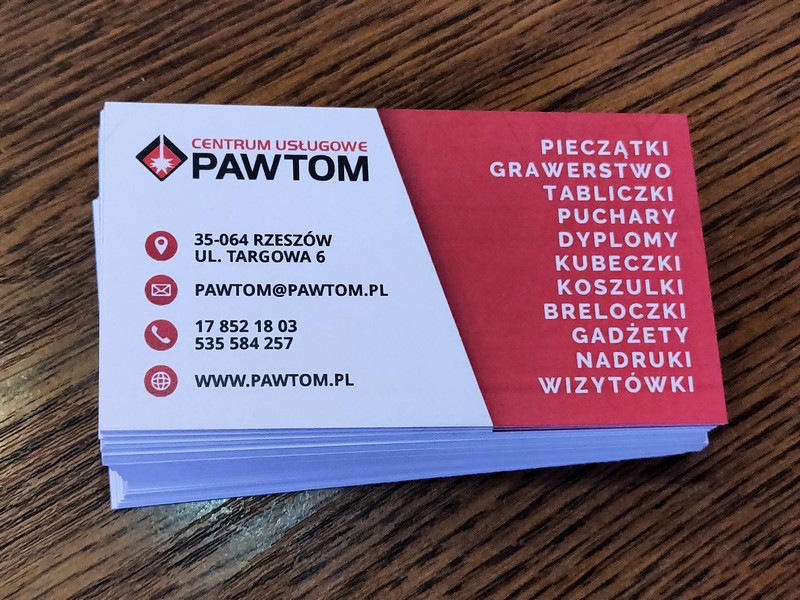 Wizytówki drukowane są na gładkim, białym, matowym papierze kredowym o gramaturze 300.