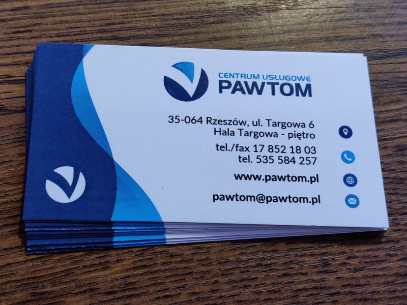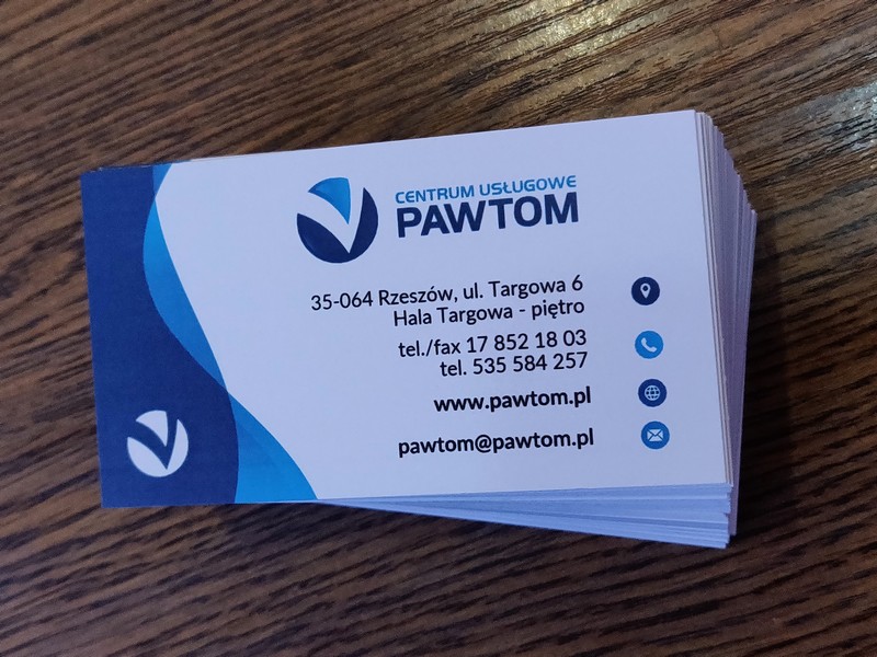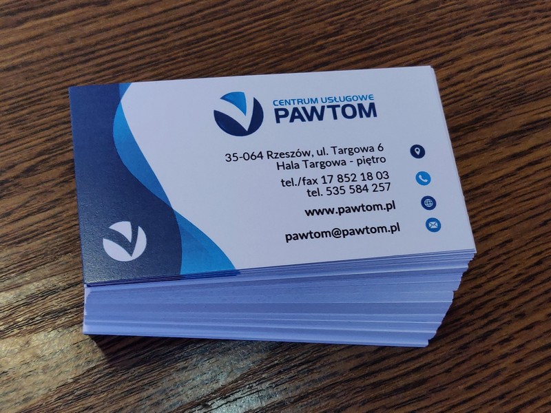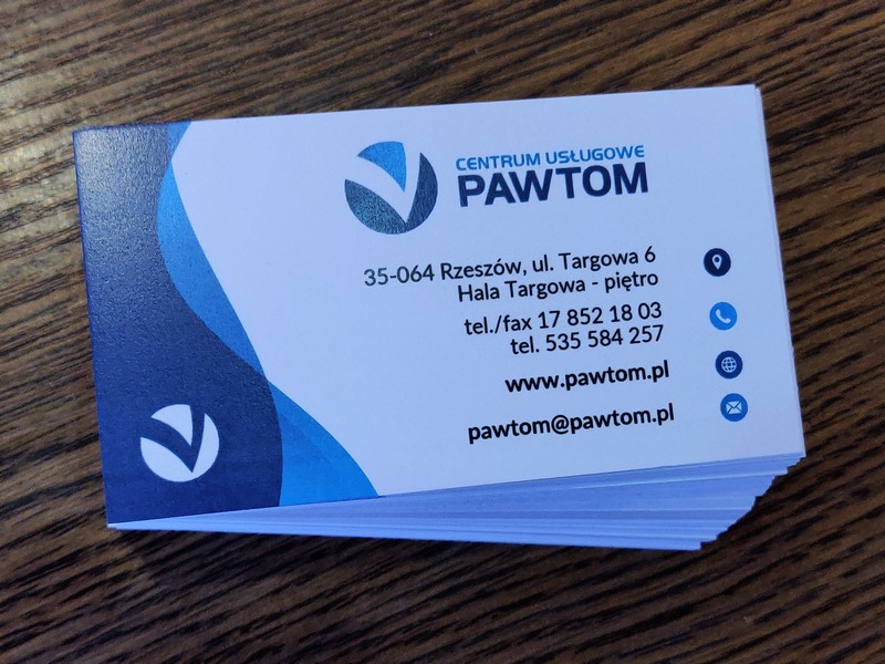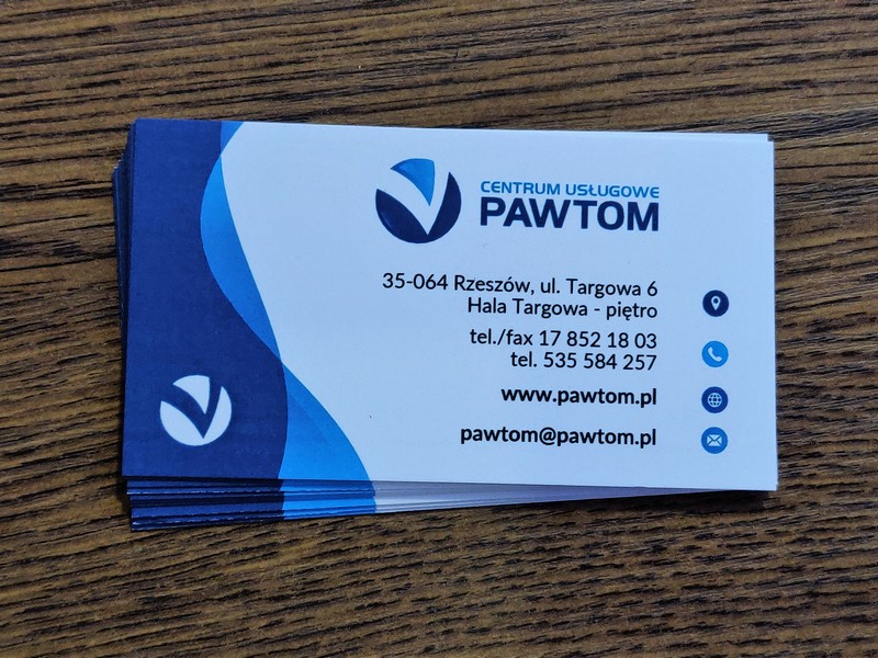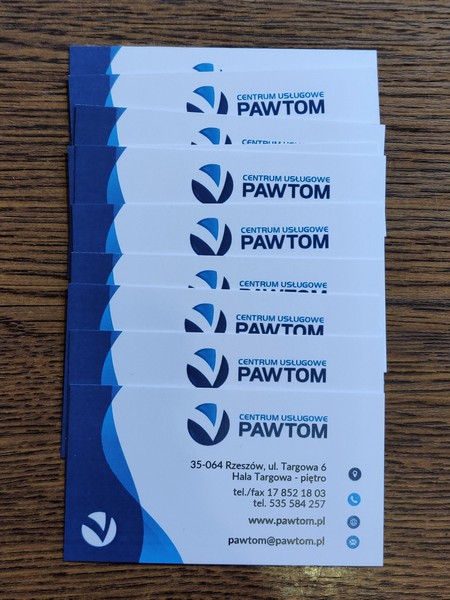 Wizytówki drukowane są na gładkim, białym, matowym papierze kredowym o gramaturze 300.