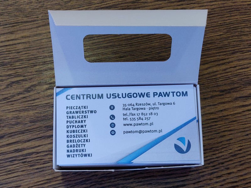 Gotowe wizytówki pakowane są w dedykowane kartonowe pudełko.