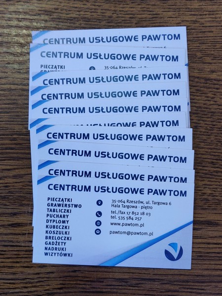 Wizytówki drukowane są na gładkim, białym, matowym papierze kredowym o gramaturze 300.