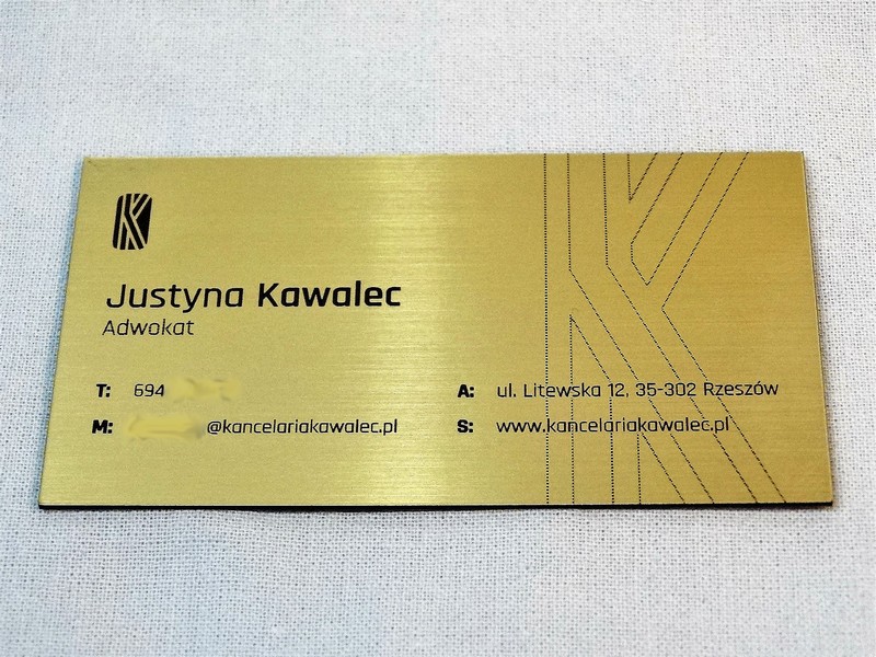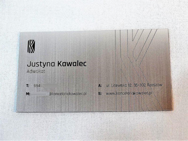 Poprzez użycie zamiast papieru - laminatu, a zamiast nadruku treści - graweru uzyskano wyjątkowe, usztywnione, trwałe wizytówki przypominające plastikowe karty.