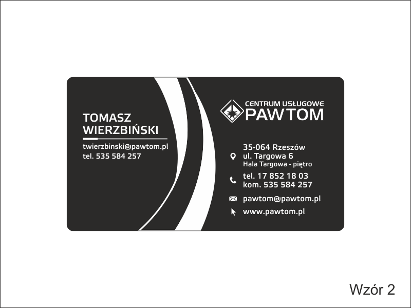 W projekcie wizytówki wykorzystano motyw w postaci umieszczonych centralnie łuków.