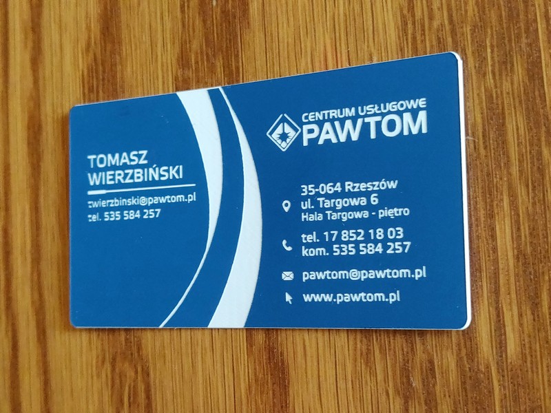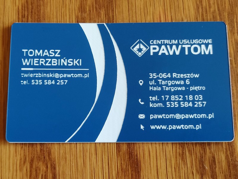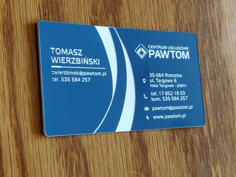 Poprzez zastosowanie zamiast papieru - laminatu, a zamiast nadruku - graweru, uzyskano wyjątkowe, usztywnione, trwałe wizytówki przypominające plastikowe karty.