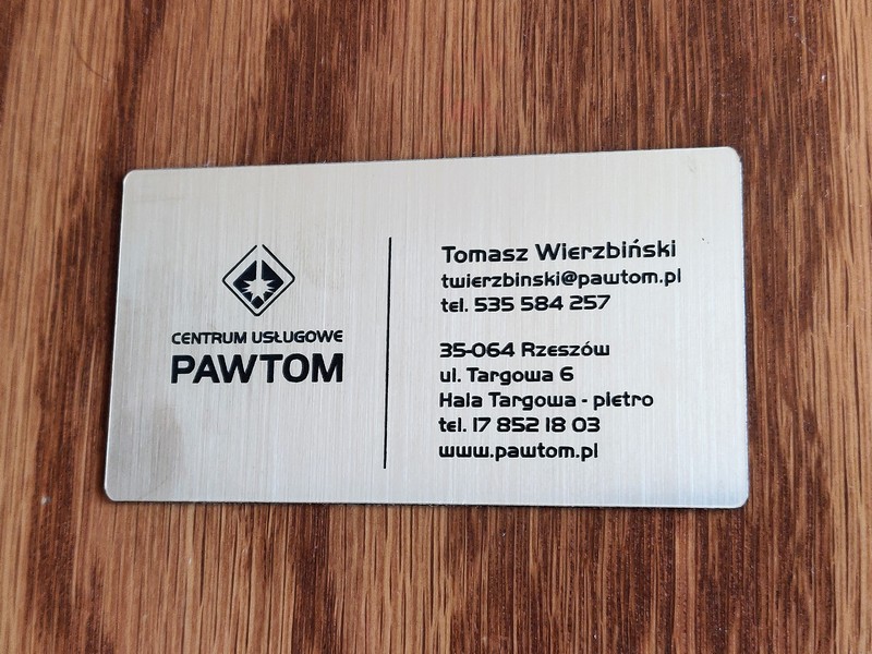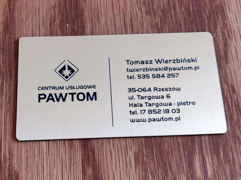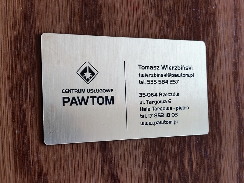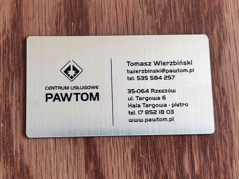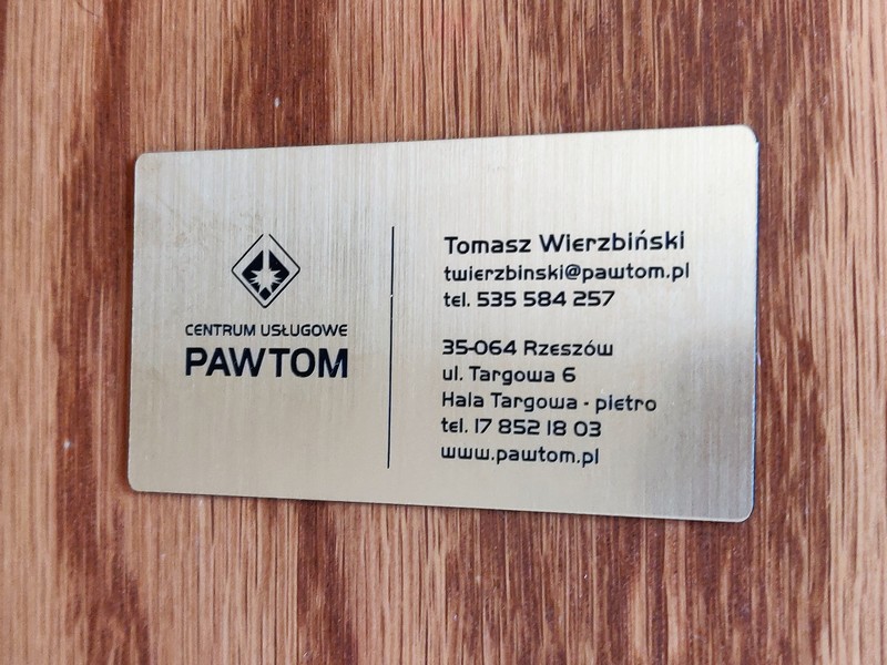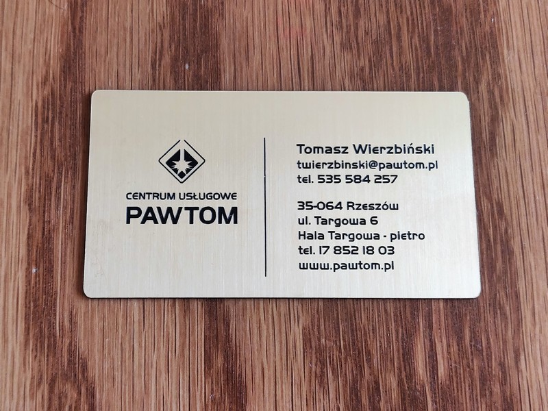 Poprzez zastosowanie zamiast papieru - laminatu, a zamiast nadruku - graweru, uzyskano wyjątkowe, usztywnione, trwałe wizytówki przypominające plastikowe karty.