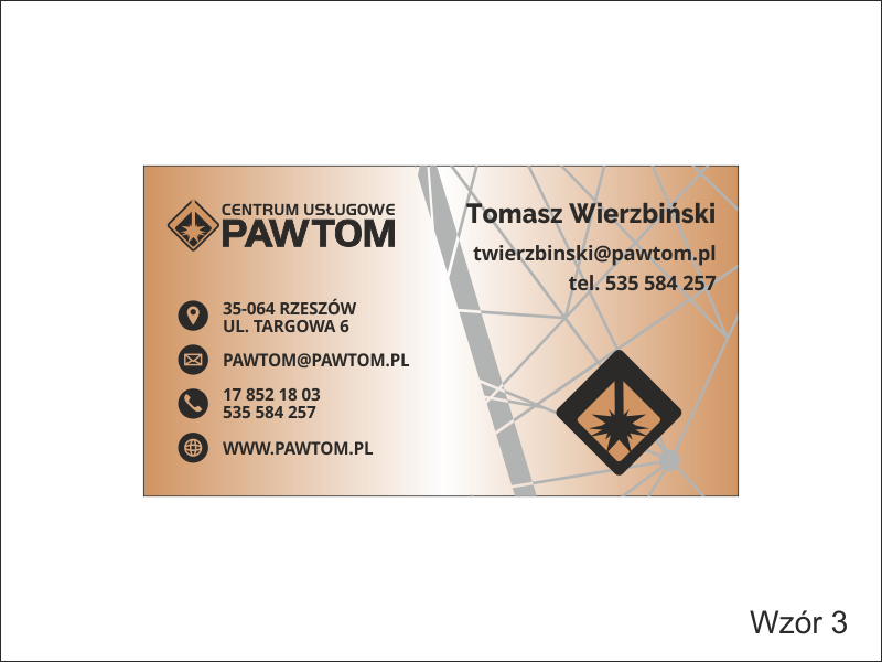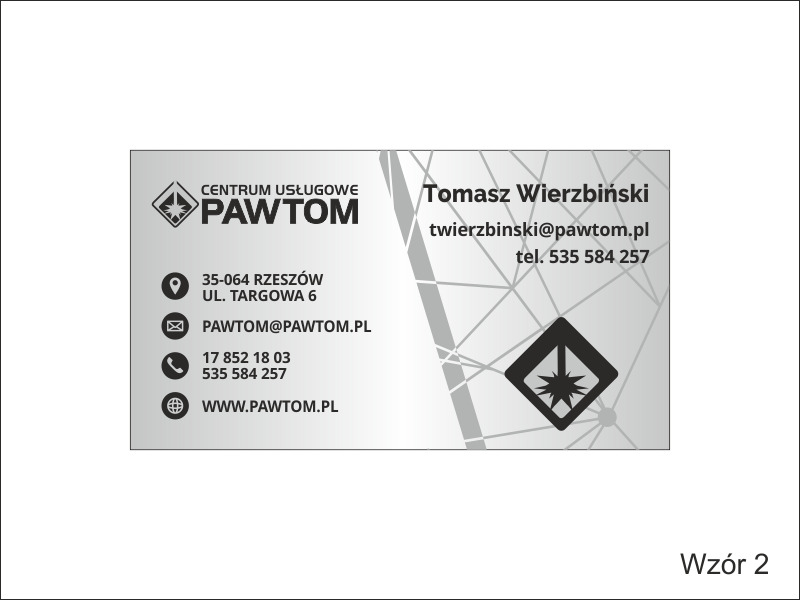 W projekcie wizytówki wykorzystano motyw w postaci umieszczonych z boku nieregularnych kresek w formie siatki.