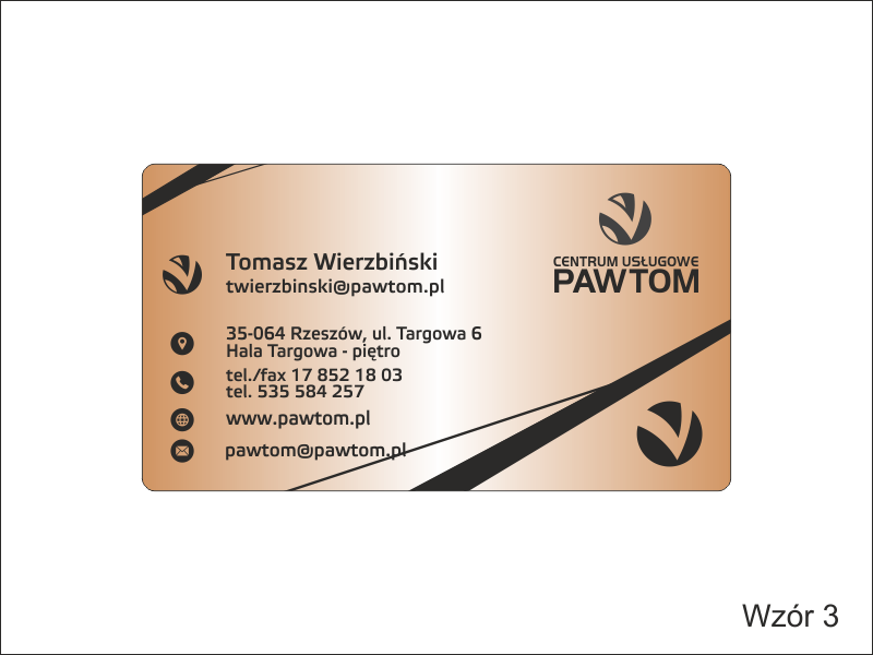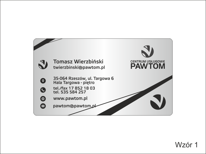 W projekcie wizytówki wykorzystano motyw w postaci skośnych, narożnych pasków.