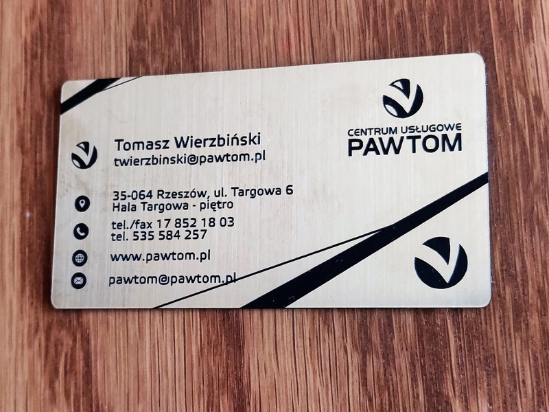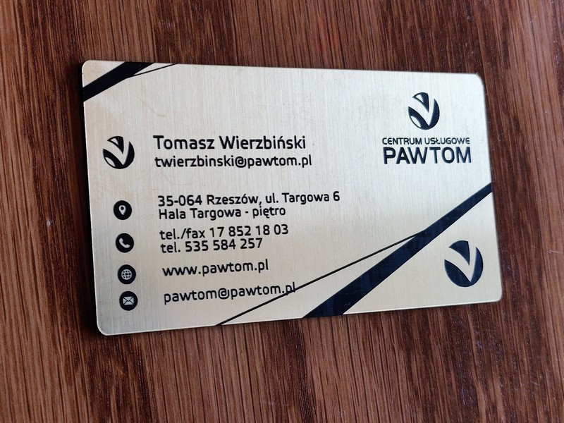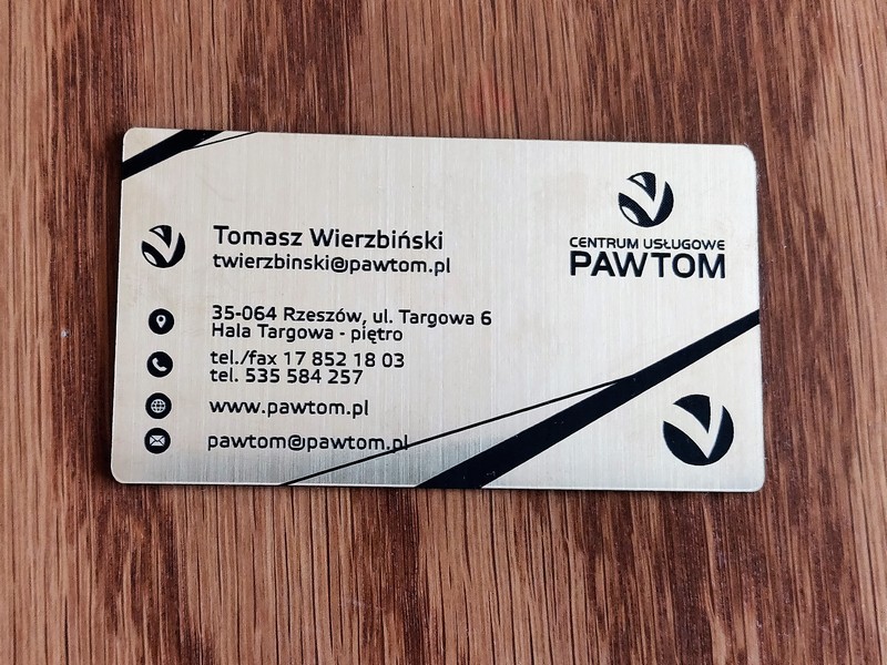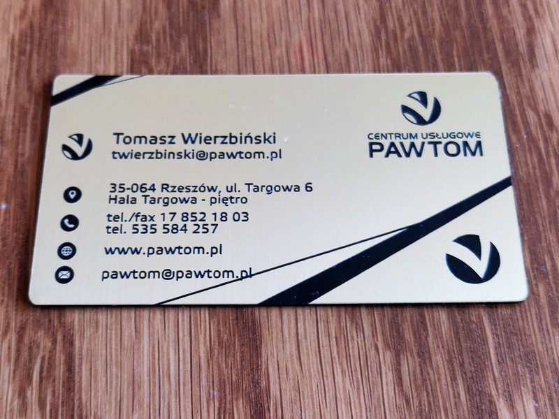 Poprzez zastosowanie zamiast papieru - laminatu, a zamiast nadruku - graweru, uzyskano wyjątkowe, usztywnione, trwałe wizytówki przypominające plastikowe karty.