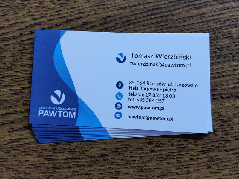 Wizytówki drukowane są na gładkim, białym, matowym papierze kredowym o gramaturze 300.