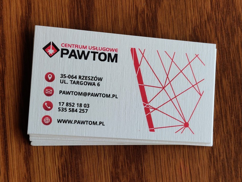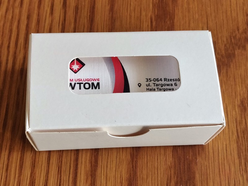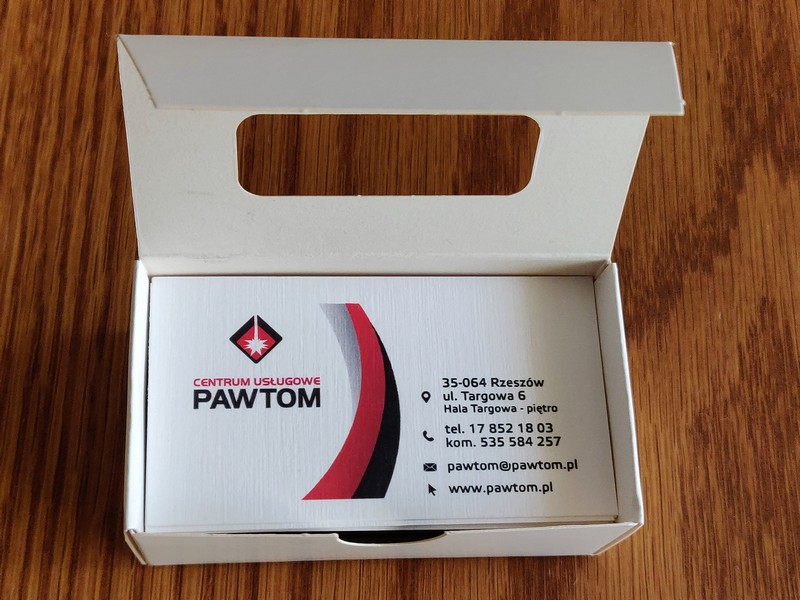 Gotowe wizytówki pakowane są w dedykowane kartonowe pudełko.