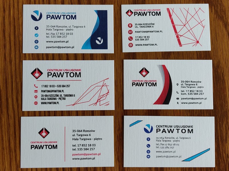 Wizytówki można wykonać wg jednego z przygotowanych wzorów lub po uzgodnieniu projektu, kolorystyki i treści.