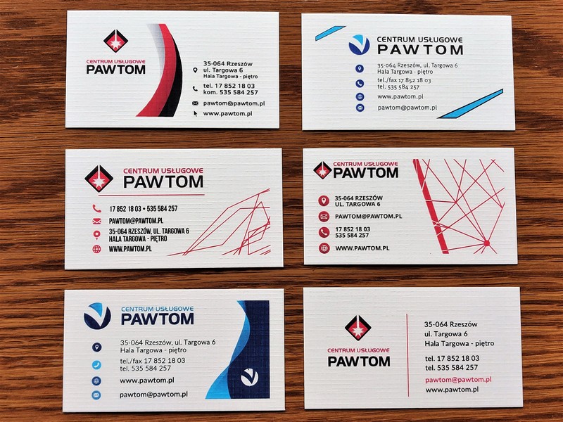 Wizytówki można wykonać wg jednego z przygotowanych wzorów lub po uzgodnieniu projektu, kolorystyki i treści.