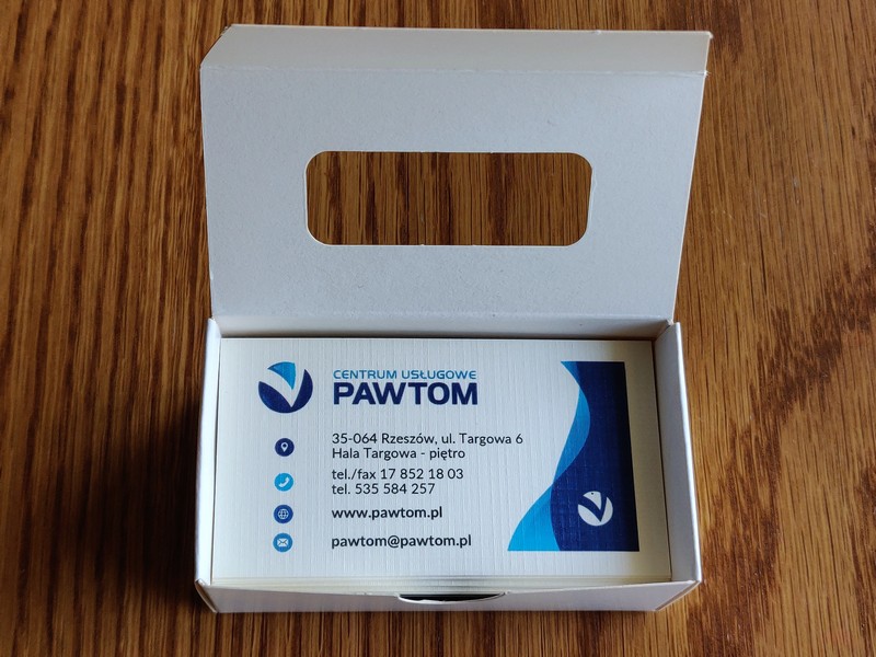 Gotowe wizytówki pakowane są w dedykowane kartonowe pudełko.