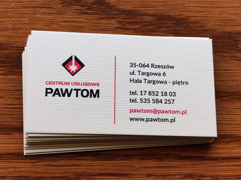 Wizytówki charakteryzują się tym, że drukowane są na wyjątkowym kremowym papierze czerpanym o strukturze płótna i gramaturze 250.