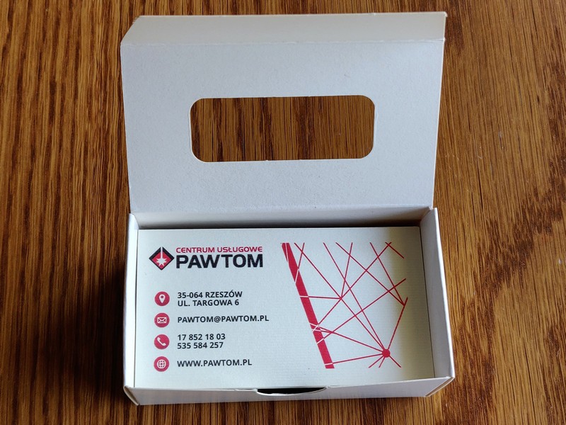 Gotowe wizytówki pakowane są w dedykowane kartonowe pudełko.